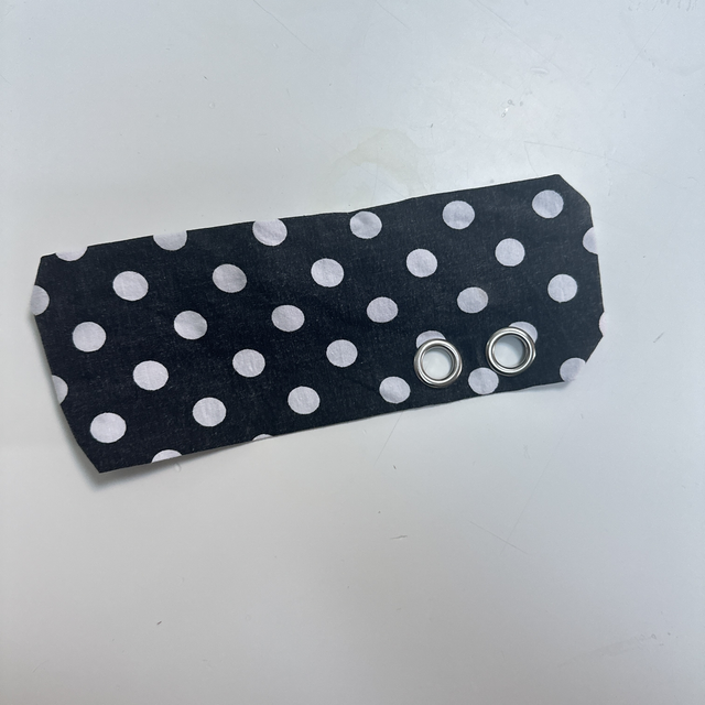 Tissu de couleur noir à pois blanc avec un détail de fleur rouge